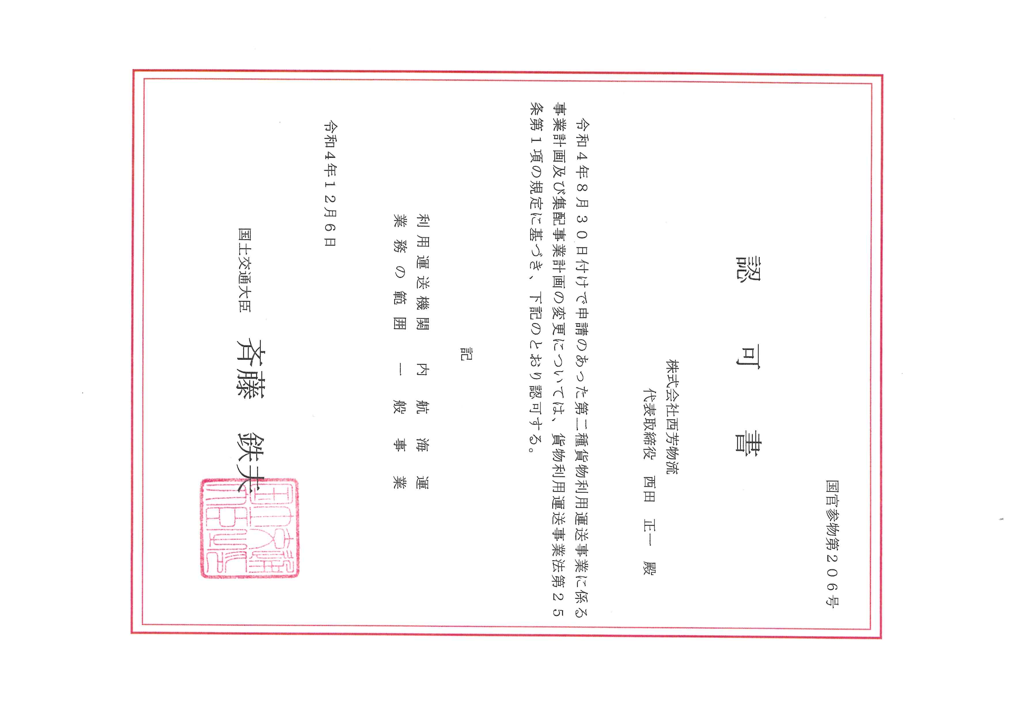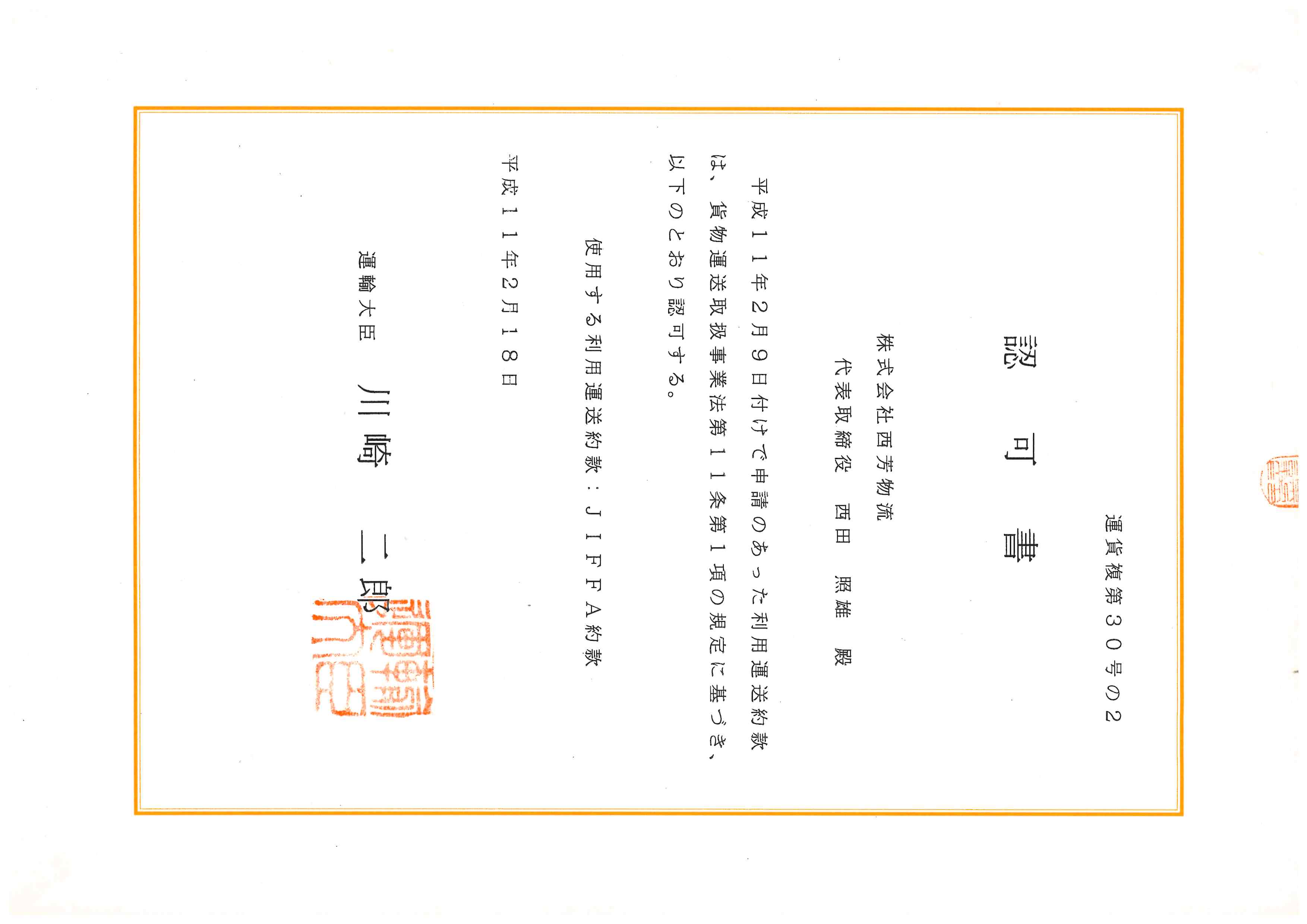 当社は物流企業として、その社会的責任の重さを自覚し、誠実性、社会的良識などの高い企業倫理を確立致します。当社の発展を通じて社会の進歩発展に貢献する事を目的として全社員が遵守すべき(企業行動憲章)を制定しました。